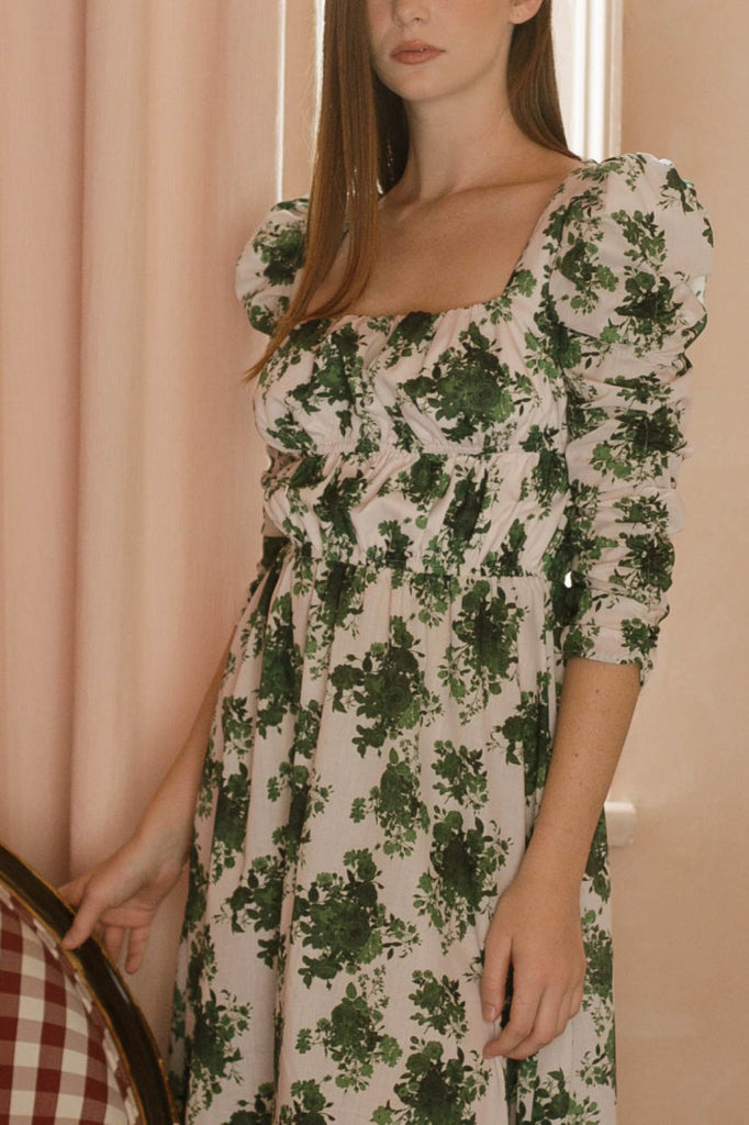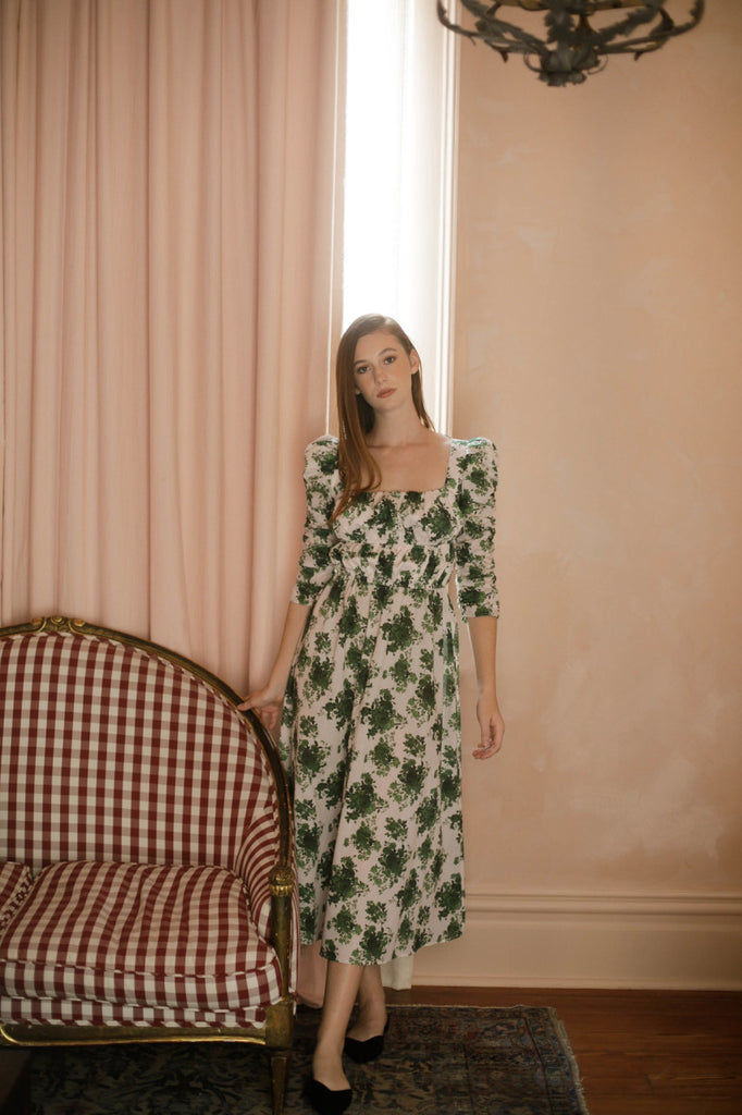 Our soft and captivating cotton dress with its flowy silhouette is designed for the perfect spin on the dance floor or relaxing day of shopping. Complete with a ruched square neckline, ruched ¾ sleeves, an elastic waistline, and a flared skirt that offers a relaxed and free-feeling fit; it’s a great stand-out piece for the fall season.
