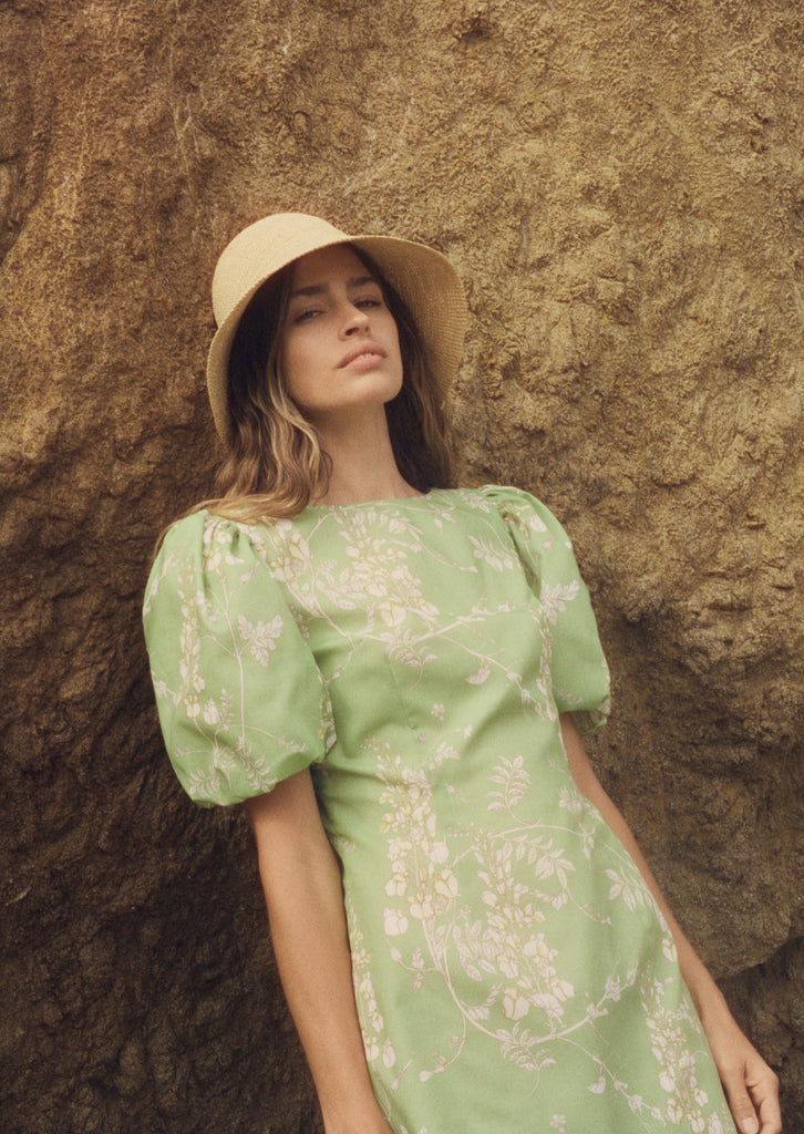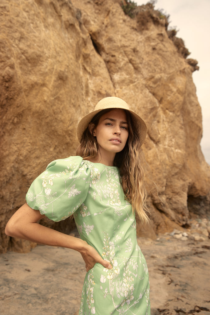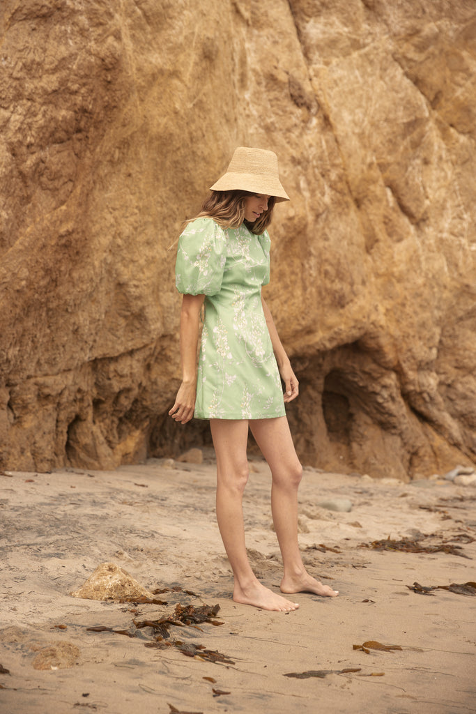 La Paz dress features our signature Wisteria print.  The perfect beach dress with double ties across the back.